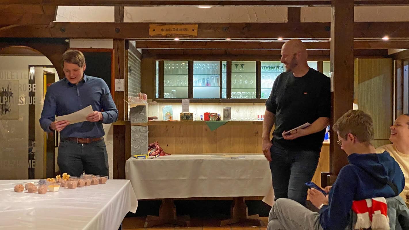 Nicht vergessen wurden selbstverständlich auch die obligatorischen zwei Runden Nusszwick – wie gewohnt lautstark und fröhlich, wobei Reinhold dieses Jahr irgendwie um seine sonst traditionelle Erklärung gekommen ist.